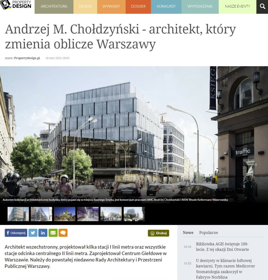 Andrzej M. Chołdzyński – architekt, który zmienia oblicze Warszawy – artykuł w portalu propertydesign.pl 16 września 2015