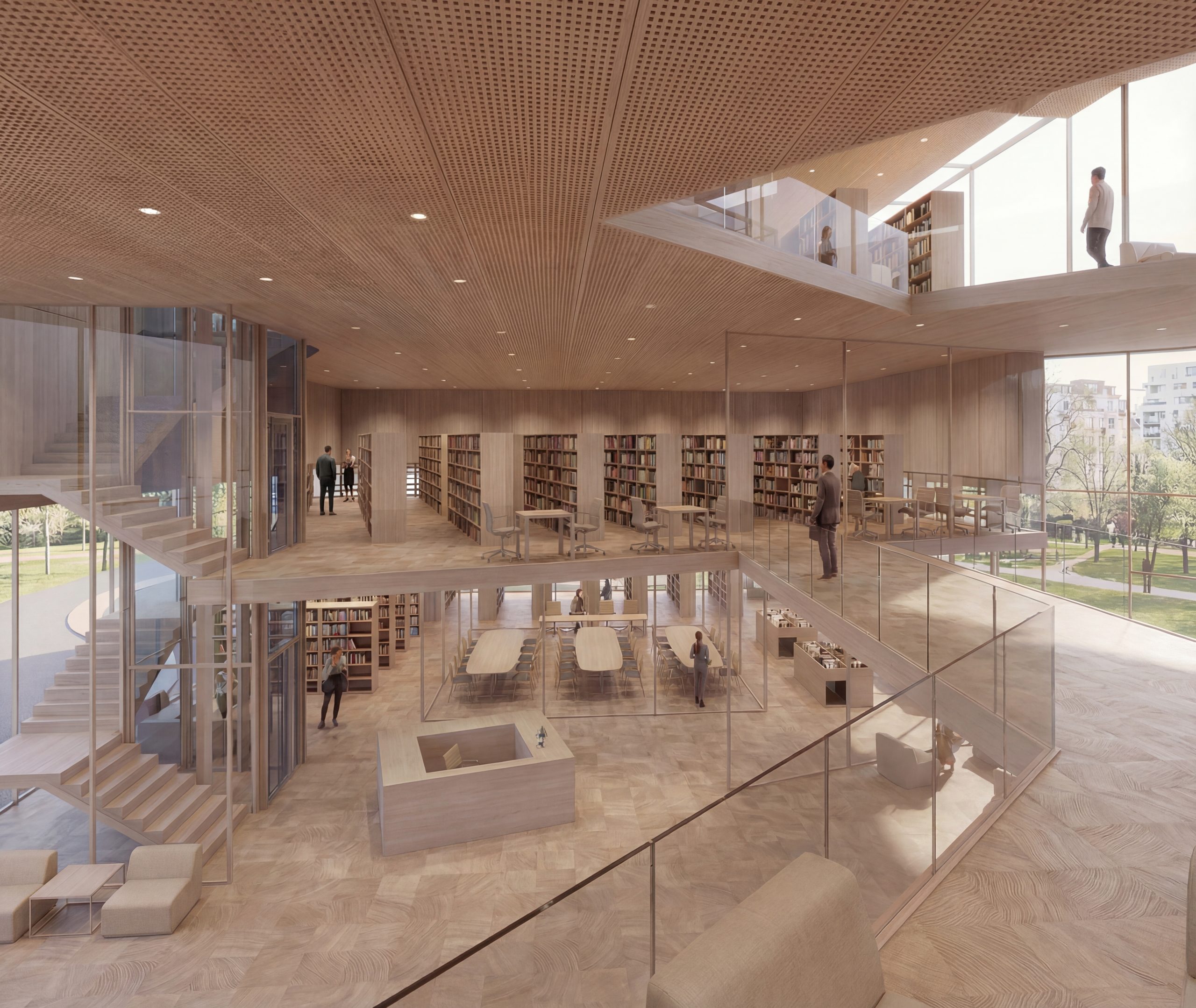 Projekt w syntetyczny i czytelny sposób łączy trzy kluczowe funkcje – literacką, widowiskową i administracyjną. Otwarta, transparentna przestrzeń parteru, podkreślona szerokimi przeszkleniami, tworzy zapraszającą strefę wejściową sprzyjającą kontaktowi z książką, spotkaniom oraz cichej pracy.